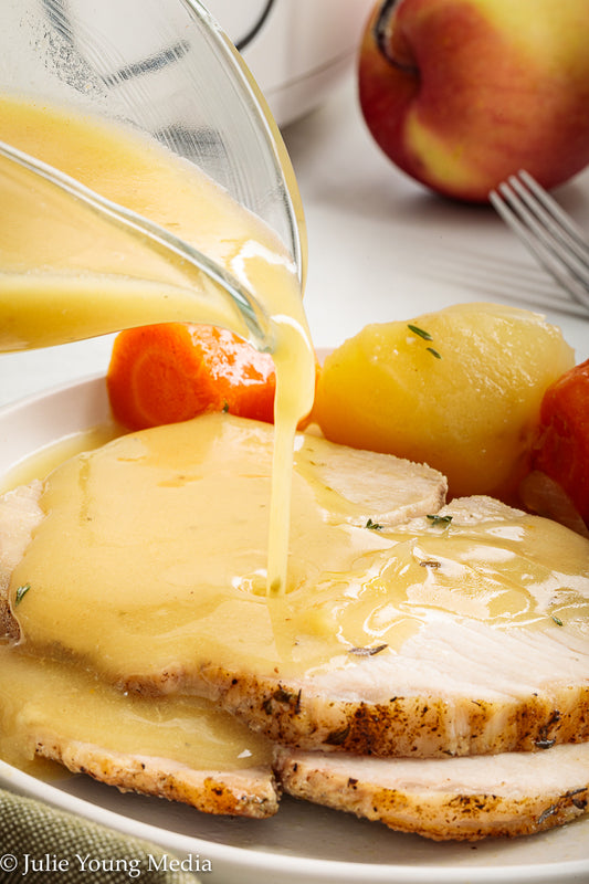 Slow Cooker Pork Loin with Apple Cider and Onion Gravy