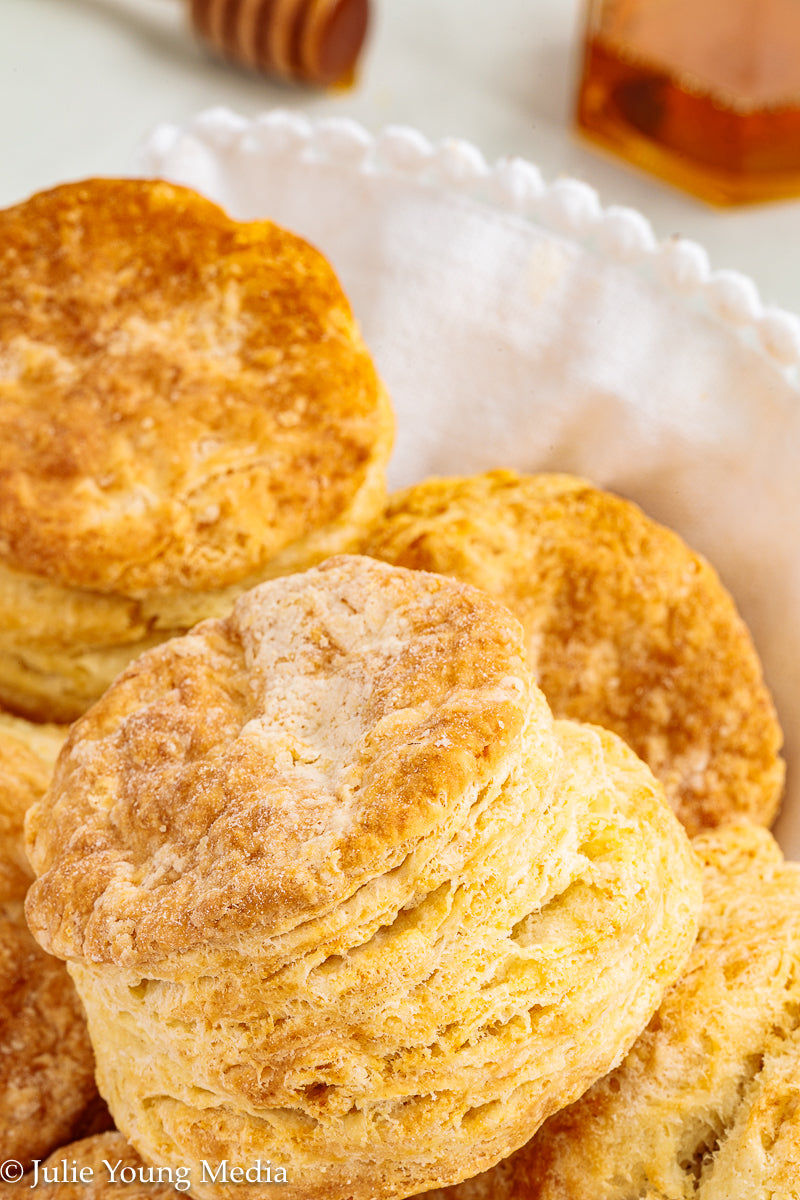 These biscuits are wonderful alongside soups and stews, split open with butter and jam, or served with eggs and bacon for breakfast.