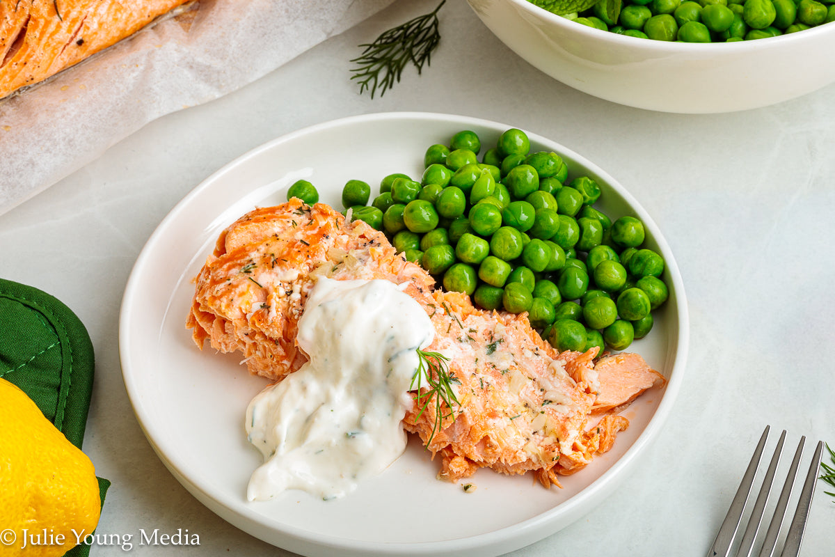This baked steelhead trout is one of those effortless weeknight recipes that feels luxurious. The fish cooks inside a simple parchment or foil packet with butter, lemon, and fresh dill — a classic technique that keeps the fillet exceptionally moist while infusing it with clean, bright flavor. The finishing touch is the quick sour cream sauce. A spoonful of sour cream, dill, and a whisper of horseradish creates a cool, tangy contrast to the warm, buttery fish.